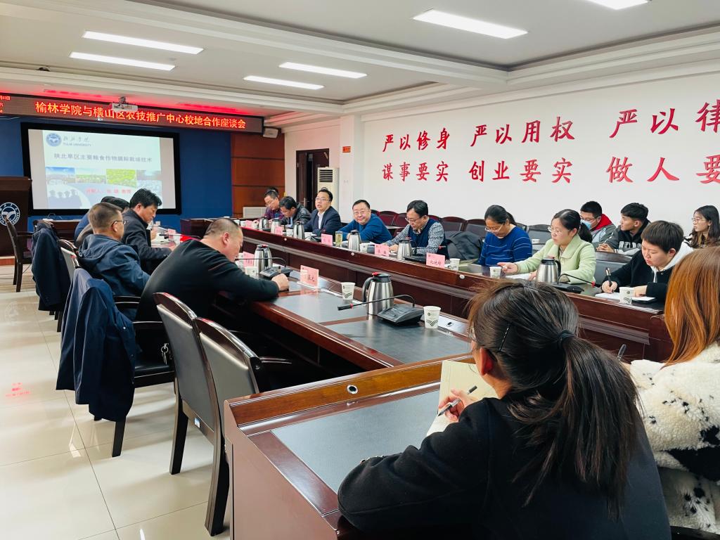 11月13日下午,beat365与榆林市横山区农技推广中心就“陕北旱区主要粮食作物膜际栽培技术”的应用与合作展开深入交流。副校长张晓出席座谈会并讲话,绥德师范校区党工委书记张雄、科研处负责人高平强和农业节水灌溉团队师生,横山区农技推广中心主任王久国、副主任雷锦银、副主任刘建华等有关专家参加会议。