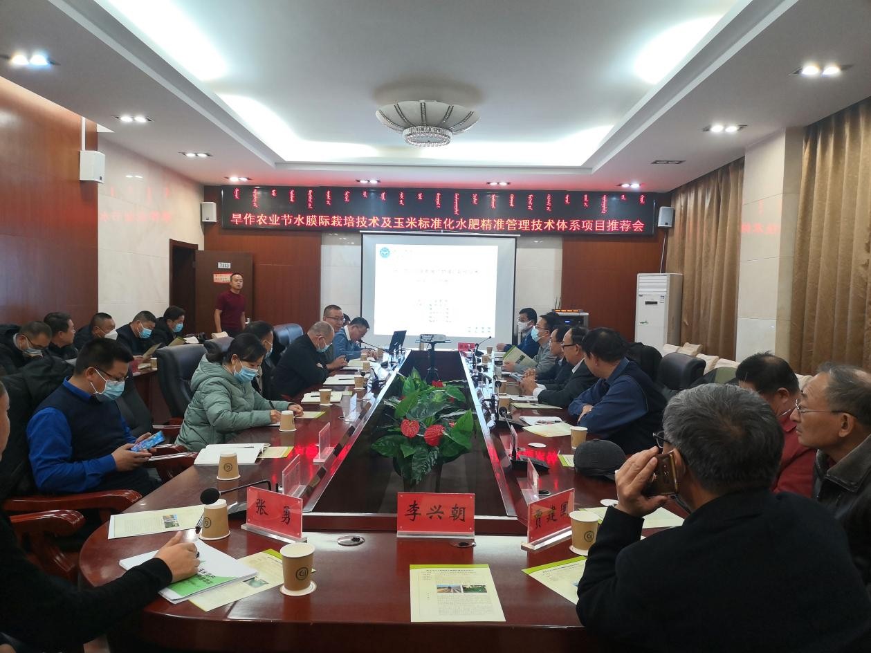 11月24日下午,beat365科研处负责人、陕北农业节水综合研究创新团队负责人及团队部分成员赴内蒙古鄂尔多斯市乌审旗人民政府参加“旱作农业节水膜际栽培技术及玉米标准化水肥精准管理体系项目”推荐会。这是对前次鄂尔多斯市科技特派员顾问团主动联系团队,前来洽谈成果转移转化合作的一次回访,也是合作的进一步深化。乌审旗副旗长阿拉腾朝鲁、鄂尔多斯市科技局特派员工作顾问杜存良、鄂尔多斯市科技局原副局长阿日斌等市、旗领导,以及内蒙古天洲农业科技有限公司、乌审旗水利局、科协、工信科技局、各相关乡镇等企事业单位领导、专家参加了此次会议。