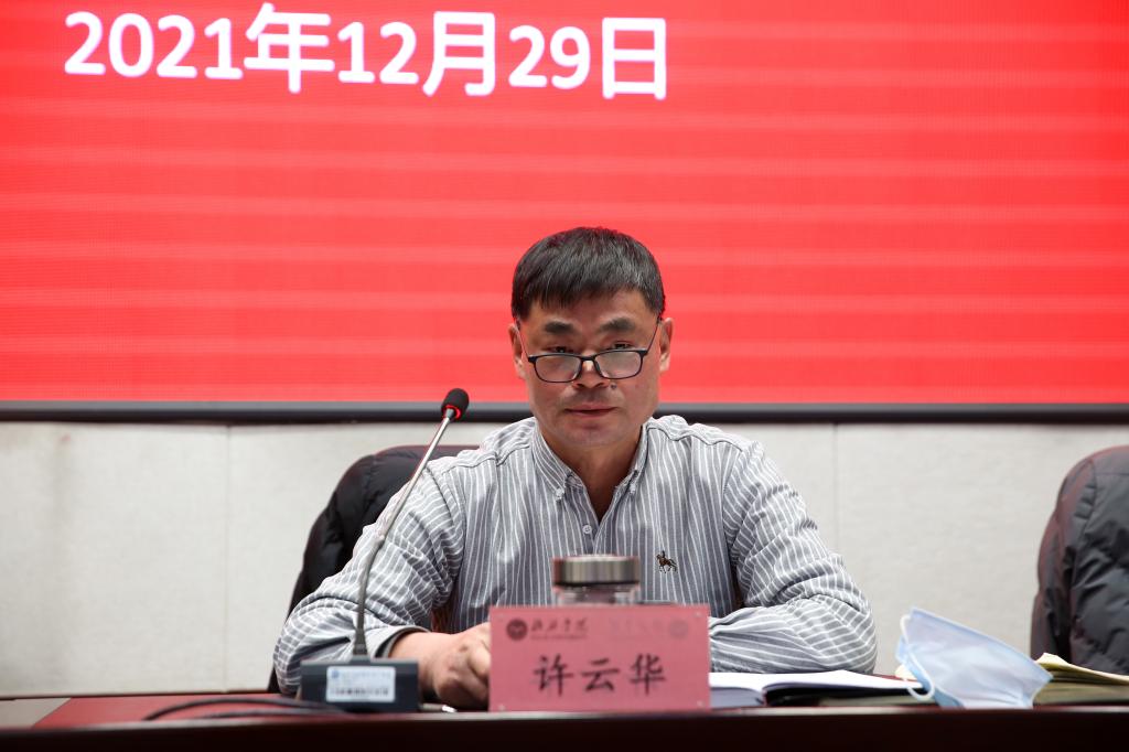许云华要求,一要坚决落实省市区关于疫情防控工作的文件精神,充分认识当前疫情防控态势,不断增强危机意识,杜绝出现“上热中温下冷”。领导干部靠前指挥,党员要冲锋在前,全力以赴筑牢疫情防控防线,巩固榆林市当前来之不易的疫情防控成果。二要严格落实人员信息摸排与报告制度,做到师生员工全覆盖,配合属地抓好重点人群、重点环节排查管控,严格落实“非必要,不外出”。三要加强学生教育和日常管理工作,制定2022年教学计划,做好线上教学准备;严格落实晨午检打卡制度,坚持每日健康打卡;建立因实习、实践离校学生台账,确保疫情防控全覆盖。四要加强督导检查问责和宣传引导工作,对于履职不力、弄虚作假、缓报瞒报的要查明责任、严肃问责;加强正面舆论引导,教育引导师生加强个人防护,积极挖掘疫情防控工作中的先进集体和先进个人,充分发挥先进典型带动效应。
