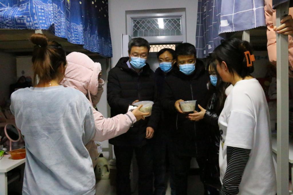 在校区餐厅,康伟和师生共同包饺子;在图书馆,他与学生交谈,详细了解他们的学习、生活和规划,鼓励同学们要好好学习、努力奋斗,做好疫情防护;在教师休息室,他高度赞扬校区精心打造的温馨舒适工作区;并详细了解了校区的教改、科研立项等情况。
