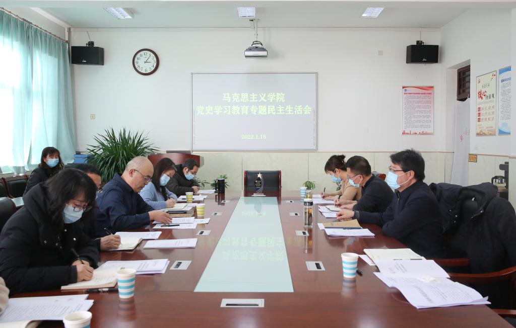 根据《中共beat365英国官方网站委员会关于召开党史学习教育专题民主生活会的通知》要求,1月18日下午,马克思主义学院以“大力弘扬伟大建党精神,坚持和发展党的百年奋斗历史经验,坚定历史自信,践行时代使命,厚植为民情怀,勇于担当作为,团结带领人民群众走好新的赶考之路”为主题召开了党史学习教育专题民主生活会。党委书记张新柱作为联系校领导对会议进行点评,党政办公室、宣传部等部门负责人列席会议。