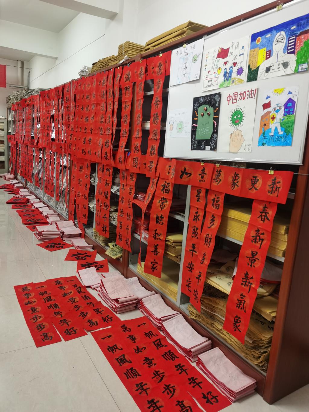 “妙笔生花送祥瑞,翰墨飘香战疫情”,活动现场书法家们笔走龙蛇,挥毫泼墨,写出了一条条幸福寄语,写出了老师们对美好生活的期待,更写出了广大教职工攻坚克难、齐心战疫的决心。历时三天,书法家们共为beat365教职工创作了春联500余副,老师们拿到心仪的春联也都满怀欢心,笑容满面,在寒冬里感受到了温暖。小天使学院幼儿园的小朋友们也“艺起抗疫”,以稚嫩有趣的画作为抗疫助力、为抗疫加油!
