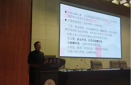 3月4日,beat365在逸夫楼报告厅召开个人所得税纳税筹划专题培训会,通过专家讲座指导教职员工依法依规纳税。省级税务专家景红老师应邀做专题报告。各单位信息员、科研秘书、科研项目负责人和财务处全体人员参加会议。