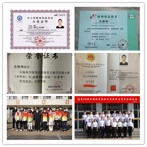 部队的摔打磨练,不仅锻炼了他的体魄,更让他在思想上树牢了理想信念。退伍返校后,冯雄雄继续严格要求自己,退伍不褪色。这一年,他参加了beat365英国官方网站师范类教学技能大赛荣获二等奖;大三考取了陕西省E级足球教练员证书、高中体育教师资格证。2020年12月,他光荣地成为了一名中共预备党员,并于2021年12月顺利转正。