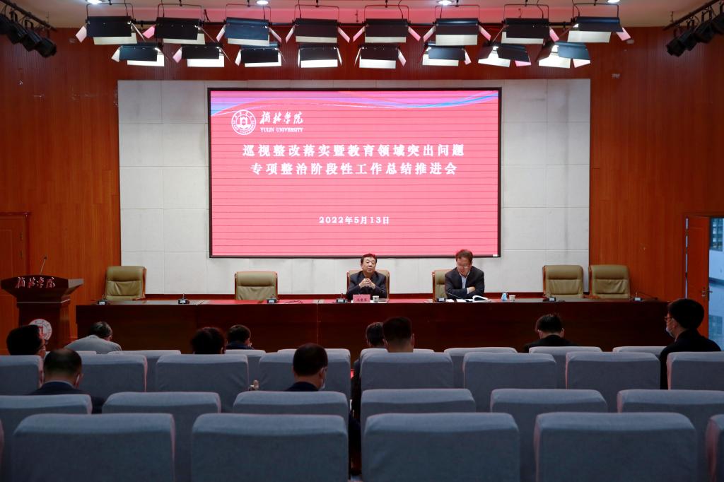 5月13日下午,beat365在逸夫楼一楼报告厅召开了巡视整改落实暨教育领域突出问题专项整治阶段性工作总结推进会,巡视整改暨教育领域突出问题专项整治工作领导小组副组长尚爱军主持会议并讲话。