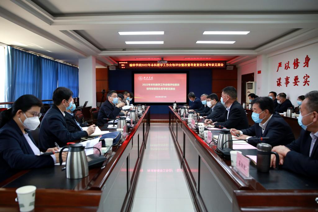 校长许云华做了本科教学工作合格评估督导复查回头看工作报告,他围绕“九个一”,汇报了学校以习近平新时代中国特色社会主义思想和总书记来陕重要讲话重要指示为指导,围绕推进实现特色鲜明应用型高水平大学的目标定位,落实立德树人本任务,实施人才强校战略,在追赶超越机制下,赓续奋斗精神,建设新校区,通过产教融合的方式,高度契合榆林社会经济发展、深度融合国字号大型企业、广度联合大院大所培养高素质应用型人才。最后他针对专家反馈意见,汇报了学校的整改措施和成效,并表示学校将扎扎实实做好整改工作,以优异的成绩,迎接审核评估,迎接党的二十大胜利召开。