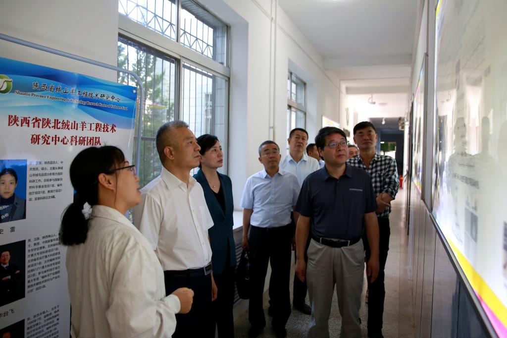 在生命科学学院陕西省绒山羊工程技术研究中心,王晓江一行听取了屈雷团队工作人员汇报,了解绒山羊研究中心的团队建设、绒山羊育种研究等情况,对研究中心在助力地方羊产业规模化发展所做的贡献表示赞赏;对学校立足自身特色优势,以生产一线需要为研究方向,将科研成果转化为服务地方经济发展的强大能力给予肯定。在参观陕北历史文化博物馆和校史馆时,王晓江指出,陕北历史文化独特丰厚,具有很高的研究价值,要组建团队,认真加以研究保护。