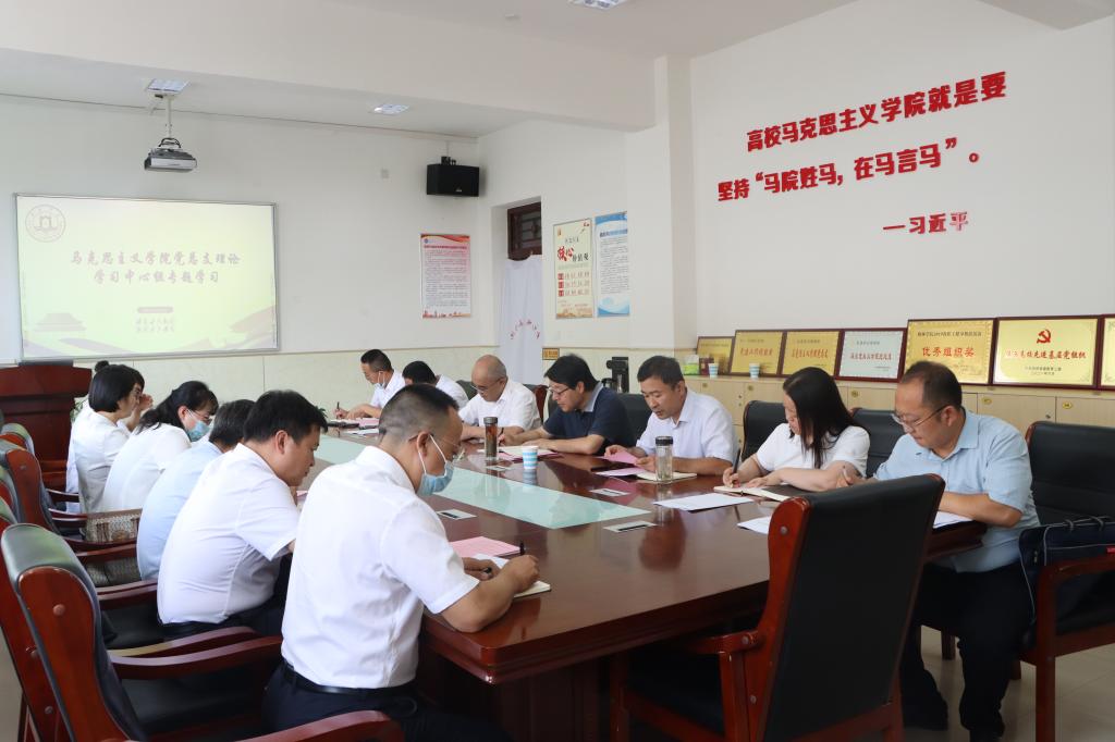6月27日上午,马克思主义学院党总支理论学习中心组召开省第十四次党代会精神专题学习会。党委书记张新柱旁听并指导学习。会议由马克思主义学院党总支书记高宏飞主持,马克思主义学院理论学习中心组全体人员参加。