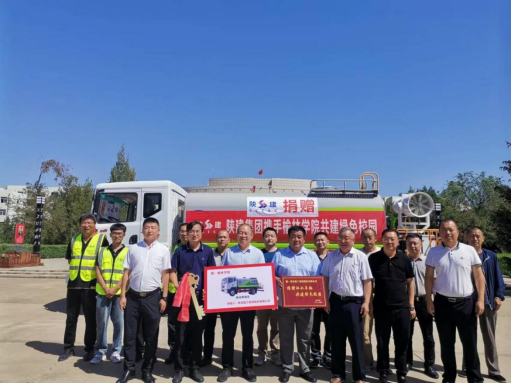 闫龙感谢陕西建工集团股份有限公司的支持和关心,表示学校一定会用好捐赠的洒水车,让它发挥应有价值,改善校园园林绿化浇灌养护条件,助力学校“创文”建设工作,为师生学习生活提供干净、优美、绿色的宜居环境。