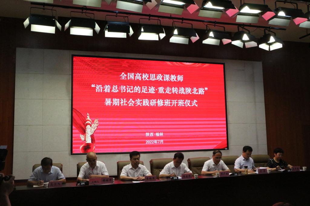 7月10日上午,全国高校思政课教师“沿着总书记的足迹·重走转战陕北路”暑期社会实践研修班开班式暨2022年咸阳师范学院马克思主义学院与beat365英国官方网站马克思主义学院暑期集体备课会在beat365举行。beat365党委副书记尚爱军出席致辞并为研修班授班旗,马克思主义学院院长张柱华主持开班式。