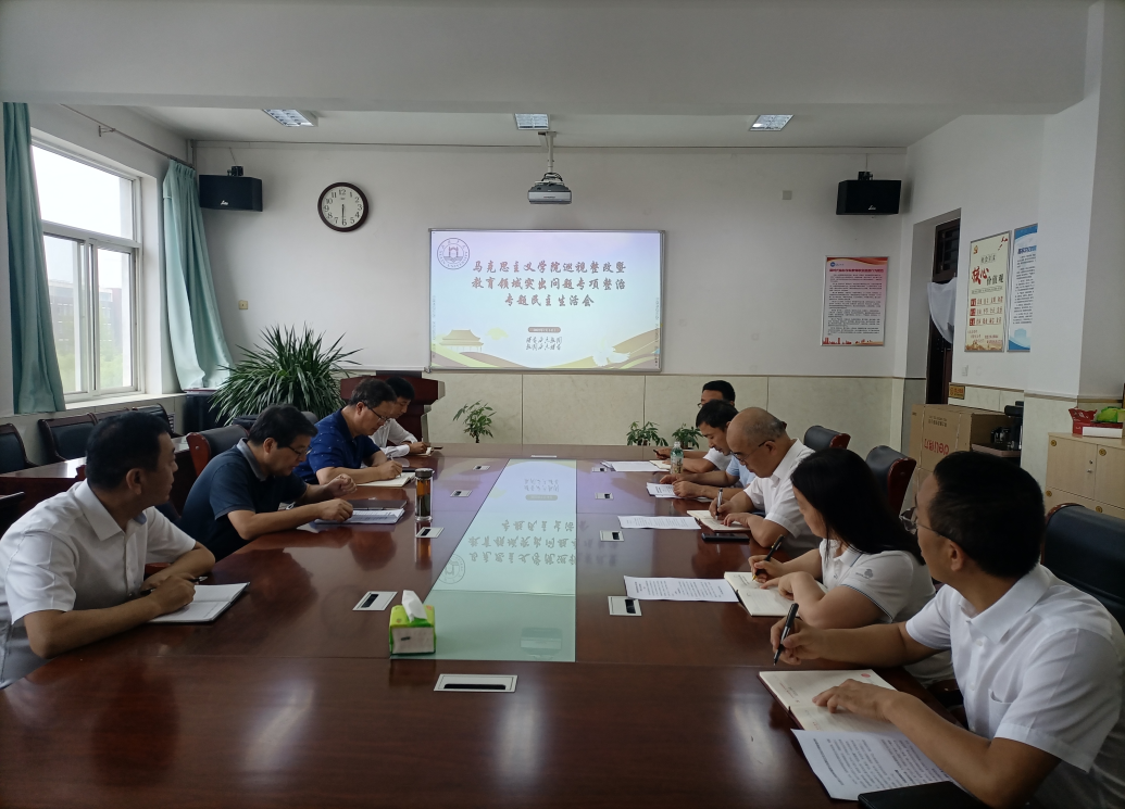 两个学院的领导班子全体成员参加。马克思主义学院党总支书记高宏飞、体育学院党总支书记崔少波代表各自学院领导班子汇报了巡视整改暨专项整治专题民主生活会的准备情况,并从六个方面就领导班子工作进行了对照检查。随后,领导班子成员逐一进行个人检视剖析,并严肃认真的开展了批评和自我批评。