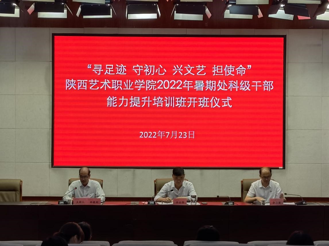 7月23日上午,“寻足迹、守初心、兴文艺、担使命”陕西艺术职业学院2022年暑期处科级干部能力提升培训班开班仪式在beat365举行。beat365党委副书记、校长许云华出席致辞,并与陕西艺术职业学院党委副书记佘占宏共同为陕西艺术职业学院干部教育培训基地揭牌。
