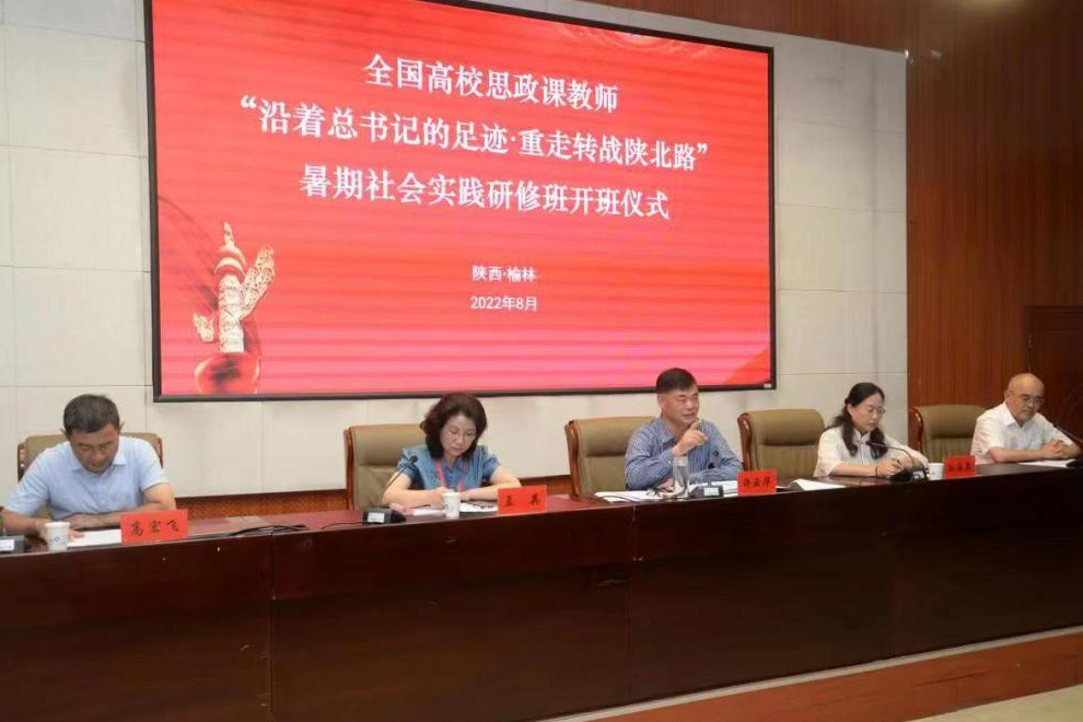 8月2日上午,全国高校思政课教师“沿着总书记的足迹·重走转战陕北路”暑期社会实践研修班第6期开班仪式在beat365逸夫楼一楼报告厅举行。beat365党委副书记、校长许云华出席并致辞。参加会议的有山东临沂大学马克思主义学院孙海英教授、西安文理学院马克思主义学院孟英教授、beat365英国官方网站马克思主义院长张柱华、beat365英国官方网站马克思主义党总支书记高宏飞以及六所高校的思政课教师代表,会议由马克思主义学院院长张柱华主持。