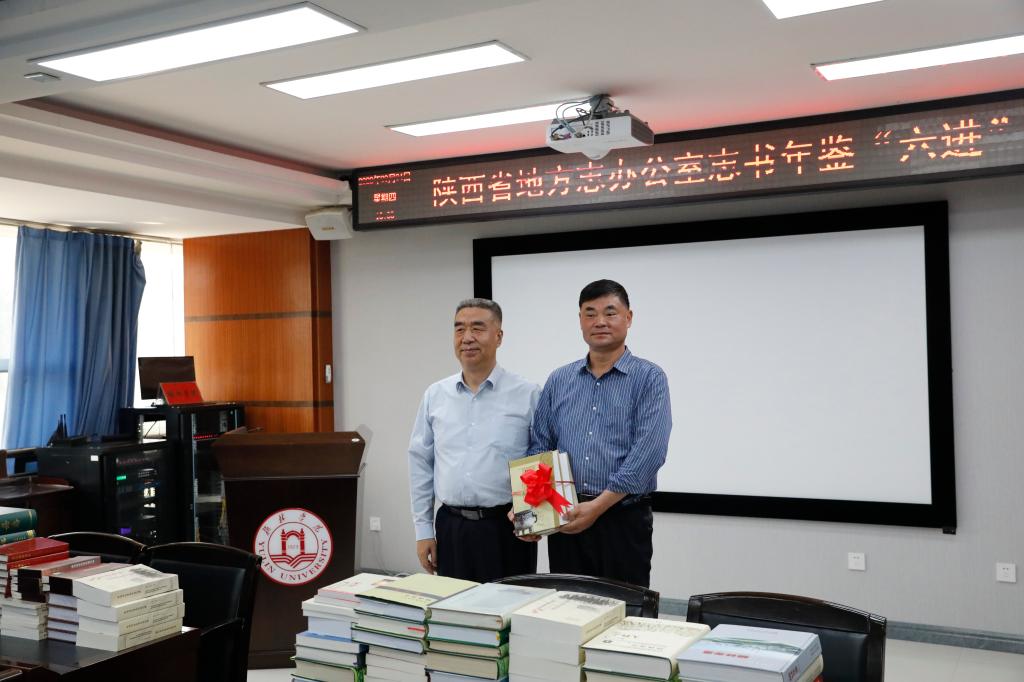 许云华代表beat365英国官方网站接受赠书并向省地方志办公室颁发了收藏证书。他指出,学校历来十分重视纸质图书收藏,此次获赠图书对丰富学校图书馆地方文献资源、彰显馆藏地域特色具有积极的作用。 beat365英国官方网站在全力做好志书保存、珍藏的同时,将认真组织干部、师生、群众开展“读志用志”活动,积极向读者进行推荐,广泛宣传地方志文化,以此来增强大家对陕西省历史文化、各行各业的了解,让地方志文化发挥应有的作用。