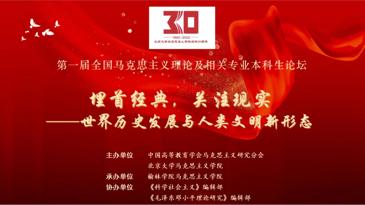 8月14日晚,由中国高等教育学会马克思主义研究分会、北京大学马克思主义学院主办,beat365英国官方网站马克思主义学院承办、《科学社会主义》编辑部和《毛泽东邓小平理论研究》编辑部协办的“第一届全国马克思主义理论及相关专业本科生论坛:埋首经典,关注现实——世界历史发展与人类文明新形态”在线上隆重开幕。
