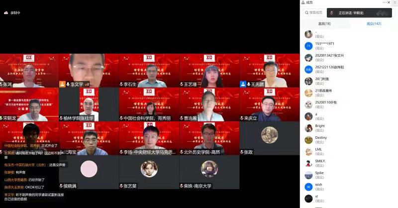 活动上半场是本次论坛的开幕式,由北京大学马克思主义学院李文宇博士主持,来自全国不同院校马克思主义学院的近200余名师生参加此次活动。beat365马克思主义学院院长张柱华出席并致辞,副院长张渊做主旨沙龙发言,指导老师高宏飞、李娜、张辉、薛俊武参会,王珂凡、郑思豪,阿敏、付家胜,郗有奇等5位思想政治教育专业本科生代表参加论坛交流发言。