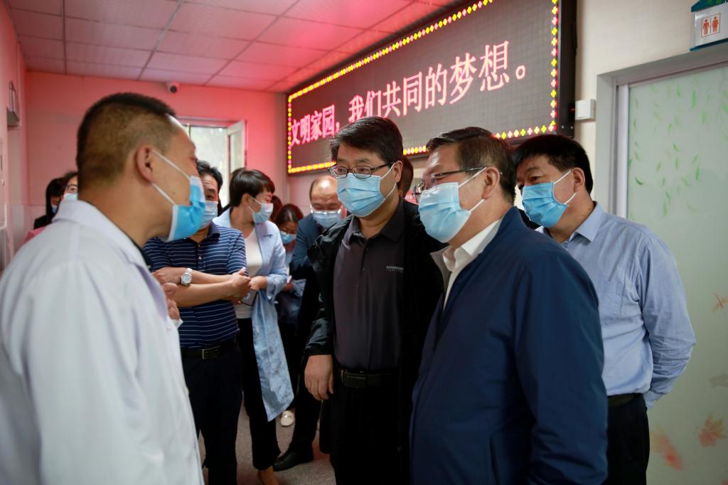 9月13日上午9:00,榆林市副市长沈效功,市政协副主席、市卫健委主任高怀和,市政府副秘书长贺光伟一行进校调研指导疫情防控工作,查看禾丰园餐厅、校医院、核酸检测点和临时隔离观察点等重点区域,对防控细节、防控应急处置措施等工作进行了现场指导,并在逸夫楼会议室就开学疫情防控工作进行了座谈。沈效功就学校提出的问题和困难现场办公,要求榆林市教育局,市卫健委、市疾控中心、榆阳区政府、榆阳区教育局、崇文路街道办等各相关单位与beat365英国官方网站密切配合,通力完成beat365英国官方网站秋季返校疫情防控工作。