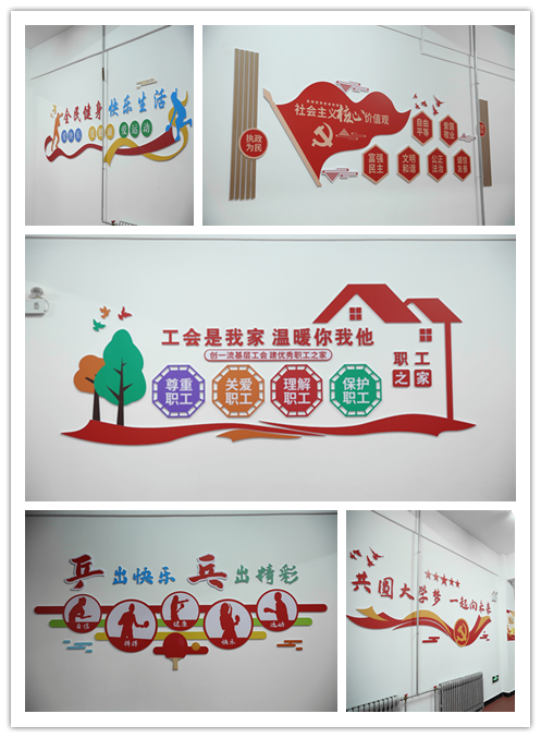 文化墙形式丰富多样,内容涵盖社会主义核心价值观、共圆大学梦一起向未来、发展体育运动增强人民体质、文明城市你我共创、全民健身快乐生活等方方面面,彰显了新时代教职工焕然一新的精神面貌,全力营造了向上向好的内部环境。