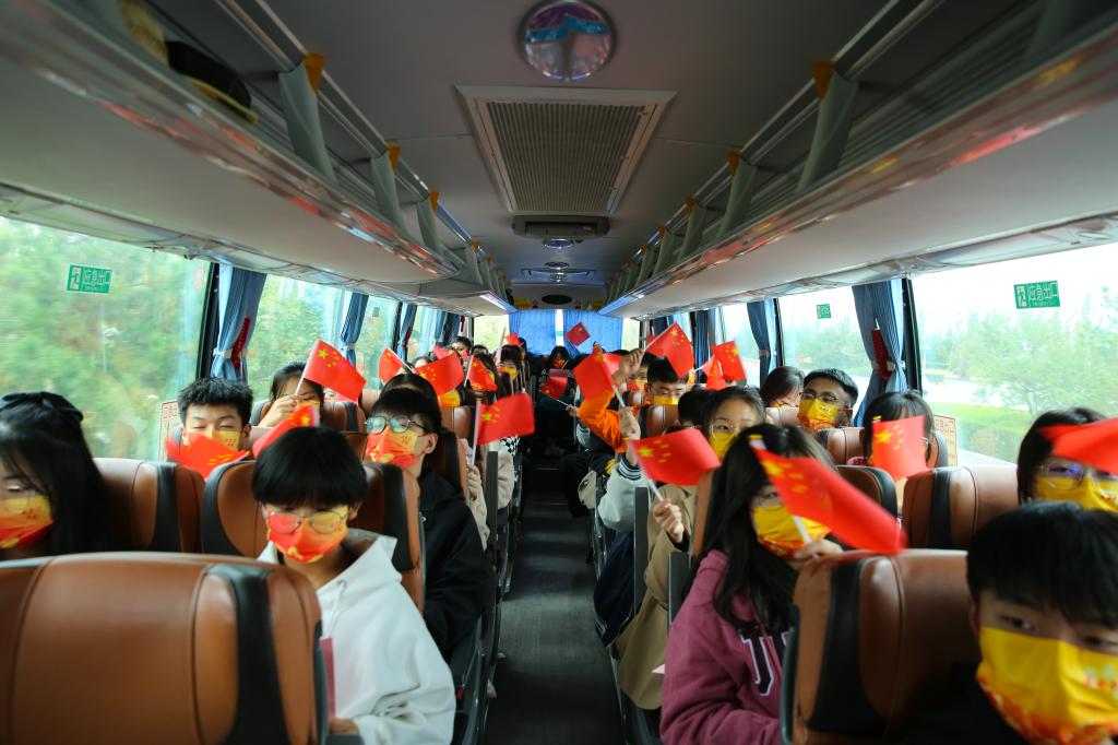 同学们怀着对新校区的美好憧憬,欢欣鼓舞地踏上返校路,在返校大巴车上,大家挥舞国旗、合唱校歌,在举国同庆的国庆假期,唱响了对祖国、对学校最美好的祝福。