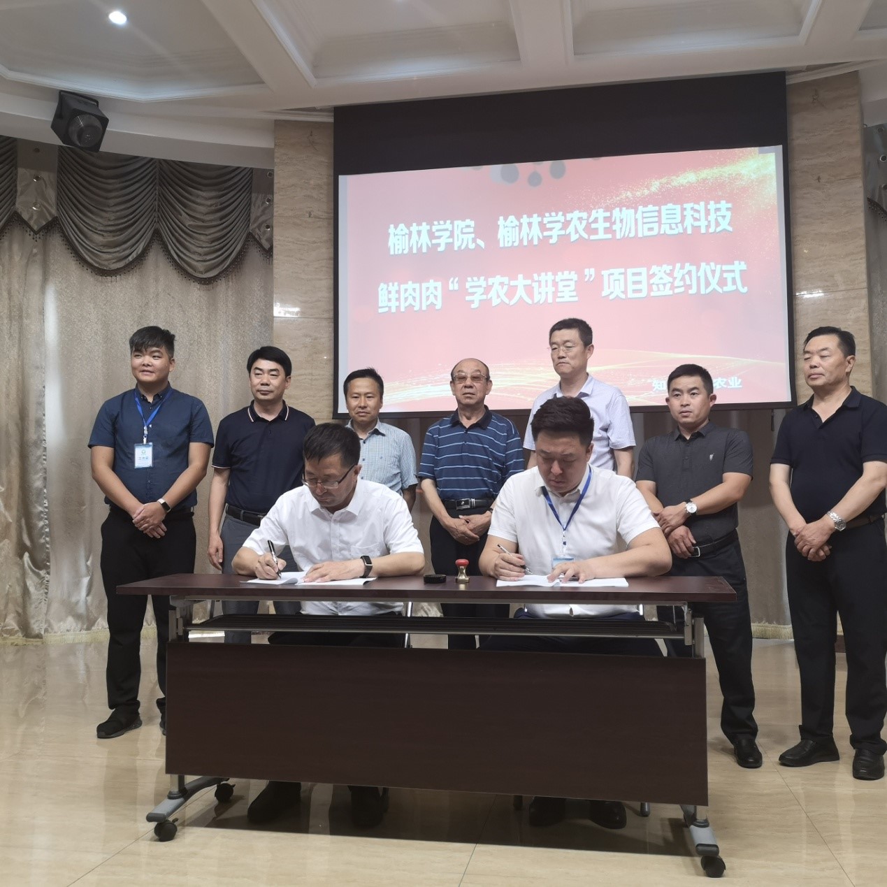 beat365英国官方网站,榆林学农生物信息科技鲜肉肉“学农大讲堂”项目签约仪式于2020年6月23日上午在榆林市高新技术产业园区鲜肉肉榆林办事处顺利举行,beat365康伟副校长,榆林市高新管委会,榆林市农业农村局及中国电信,陕西秦源等鲜肉肉公司相关合作单位负责人参加了签约仪式。beat365绒山羊中心主任屈雷教授进行了主题发言、现场线上指导农户养羊及答疑解惑,并完成了现场签约。