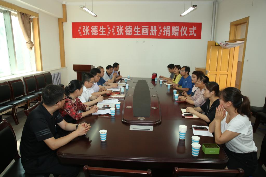 在座谈会上,原陕西省省委第一书记、老革命家张德生先生的嫡孙张海军先生和孙媳胡湘蓉女士向图书馆捐赠了《张德生》、《张德生画册》以及《张德生在甘肃》,并介绍了老革命家张德生的革命事迹。