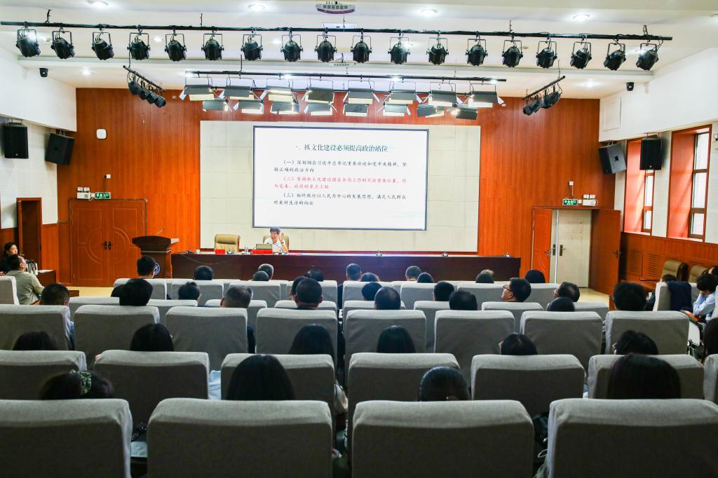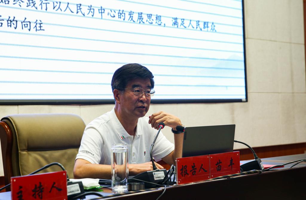苗丰围绕如何深入学习贯彻习近平新时代中国特色社会主义思想,认真落实习近平总书记来陕考察重要讲话精神和关于社会主义文化建设的重要论述,聚焦文化自信和文化建设。他从提高政治站位、肩负使命担当、涵养人文情怀、开阔格局境界、富有创新精神等方面,结合政策理论和鲜活生动的案例,讲授了关于基层文化建设的理性思考与实践探索。