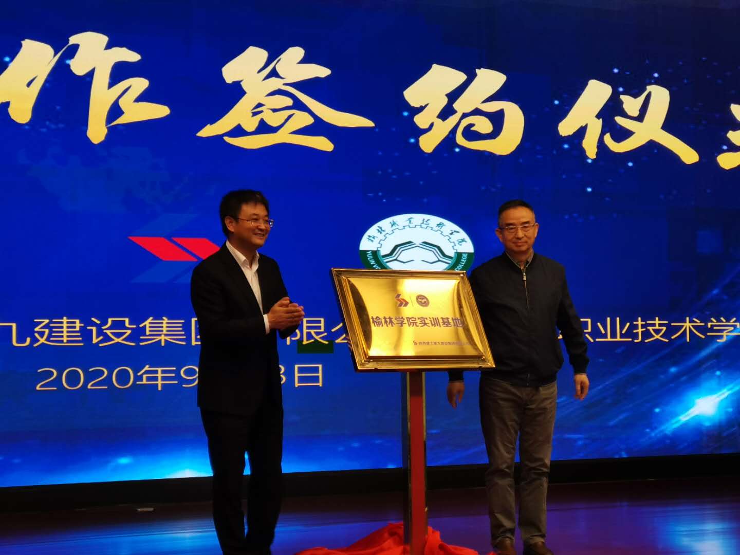 9月23日上午,beat365英国官方网站、榆林职业技术学院分别与九建集团签署校企合作协议。beat365英国官方网站副院长张富林、榆林职业技术学院副院长马海树,九建集团党委书记、董事长贺国健出席并致辞。