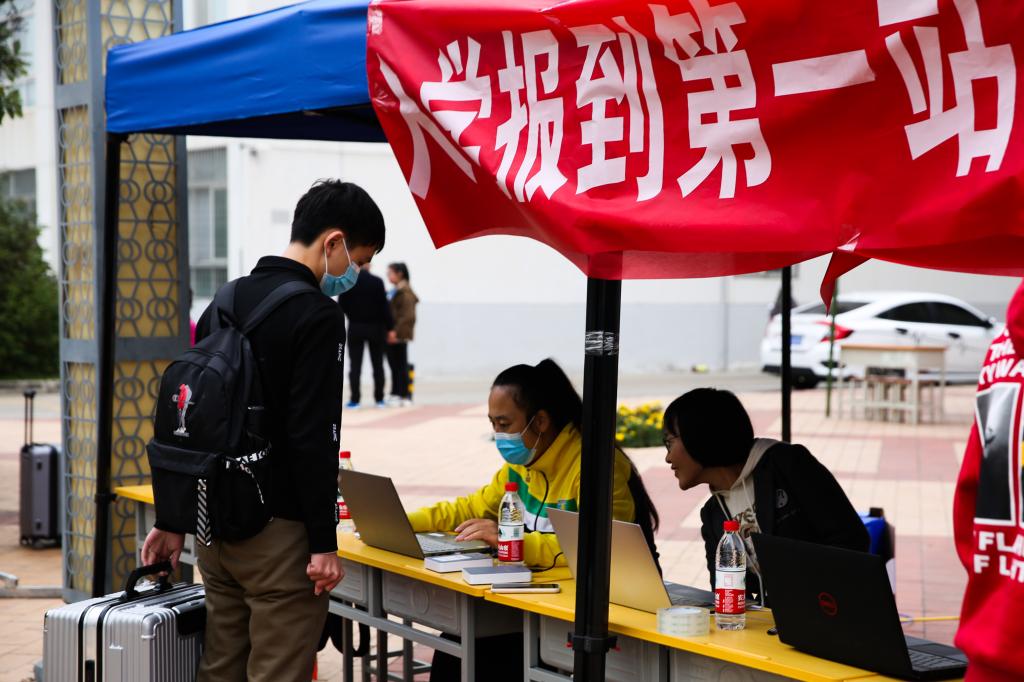 受疫情影响,今年的迎新工作较往年有许多不同,学校实施了“远程迎新”,线上完成报到、缴费等流程,大大提高了报到效率;校内进行道路指引、行李搬运、专车接送等服务;在校门处设置了疫情防控测温点,学生需出示健康码,经审核与体温测量后方能进入学校;还设立了临时隔离点,如有体温异常者,将被送至临时隔离点进行观测;为新生及家长温暖护航,确保整个迎新工作“安全、周密、顺畅”地进行。