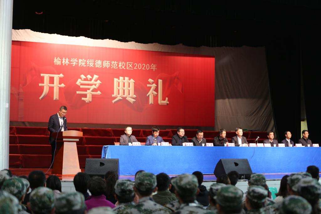 10月26日下午,beat365绥德师范校区2020级新生开学典礼在校区礼堂隆重举行。榆林市人民政府副市长杨东明、beat365校长许云华、副校长张晓、榆林市教育局局长沈效功、绥德县县委副书记杨树森及校区校级领导在主席台就座。校区全体教职工、586名新生及全体大二学生参加开学典礼。会议由beat365副校长、绥德师范校区党工委书记康伟主持。