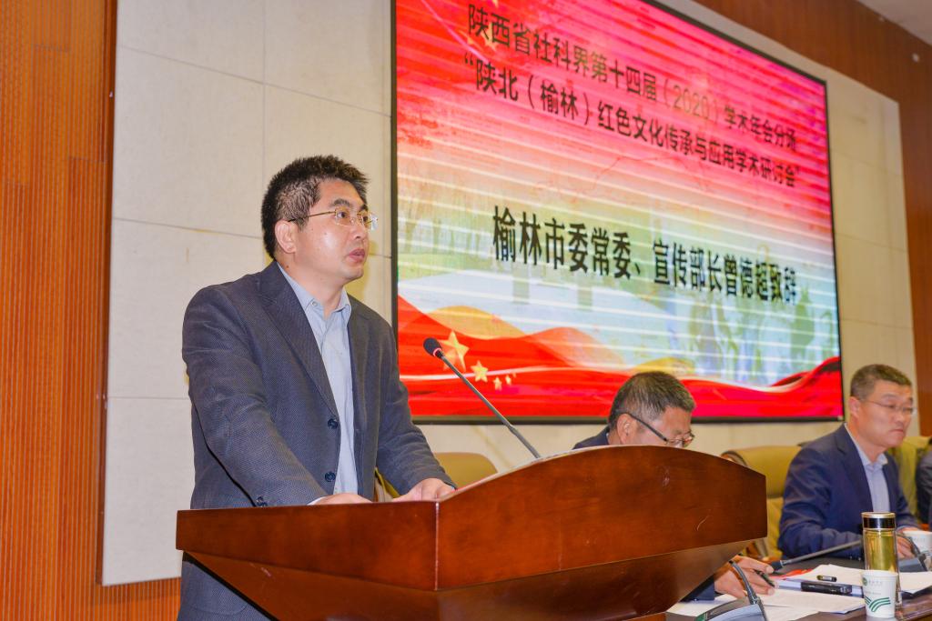 曾德超在致辞中表示,榆林市高度重视红色文化传承与应用工作,积极挖掘党史资源,着力弘扬红色文化,出版制作了多部党史书籍资料和宣传片,并建成了西北地区首个网上3D革命纪念馆。榆林将以此次“红色文化传承与应用学术研讨会”为契机,深入贯彻落实习近平新时代中国特色社会主义思想,利用好红色资源、发扬好红色传统、传承好红色基因,为全市实现经济社会转型升级、高质量发展提供强大的精神力量和文化支撑。